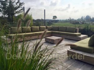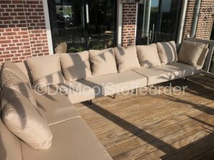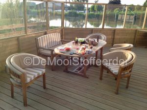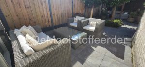 De Mooi Stoffeerder maakt voor u tuinkussens op maat van kwaliteitsstoffen die waterafstotend en schimmelwerend zijn. Wij gebruiken kussenvullingen die jarenlang stevig blijven en hun vorm zullen behouden. U zult jaren plezier houden van de loungekussens die wij voor u gestoffeerd hebben. Wij kunnen bestaande kussens herstofferen en we kunnen nieuwe kussens op maat maken voor de bank die u net heeft gekocht of zelf heeft getimmerd. Kom langs in ons atelier en bekijk de vele prachtige buitenstoffen die waaruit u kunt kiezen.